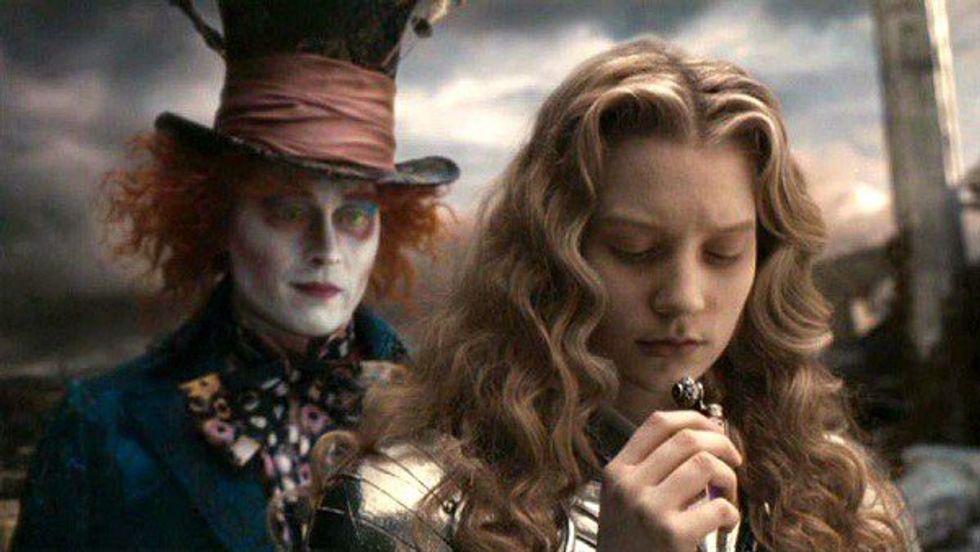 A moment for Alan Rickman who was the Caterpillar in the movie. Now for the four of the main characters of the movie are Mia Wasikowska who played Alice, Johnny Depp as The Mad Hatter, Helena Bonham Carter as the Red Queen and Sacha Baron Cohen who was Time. They are the most focused on people in this movie Alice as she goes on this great adventure in wonderland to help save The Hatter but in the process she has to interact with Time himself. Mia Wasikowska is an actress with some awesome history for movies, such as Crimson Peak. However, she had her flaws in what she had done in it. Slight mannerism and ways that she moved or spoke had hints of something else in them, that took out of the moment, they were small moments.