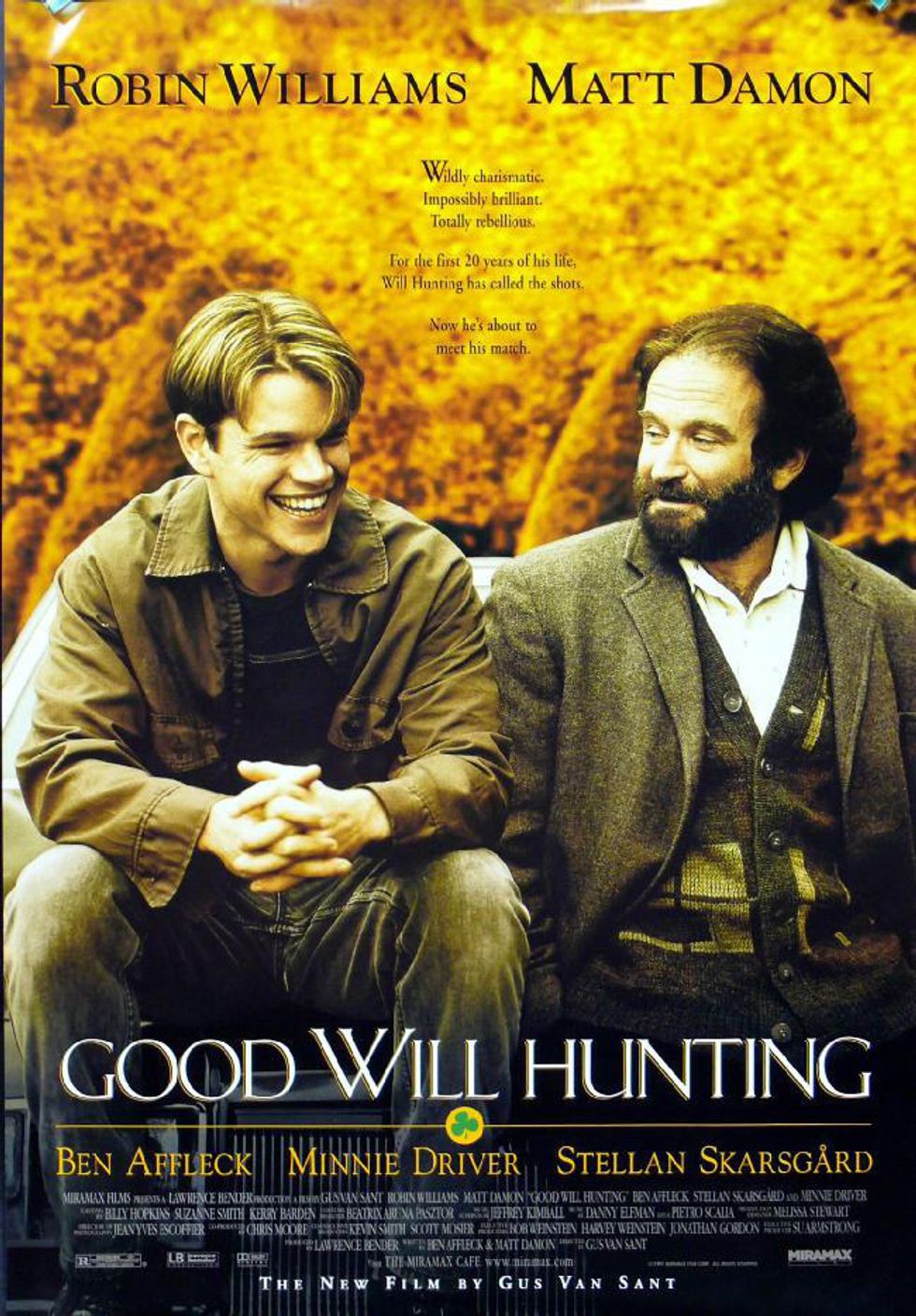 “Will Hunting (Matt Damon) has a genius-level IQ but chooses to work as a janitor at MIT. When he solves a difficult graduate-level math problem, his talents are discovered by Professor Gerald Lambeau (Stellan Skarsgard), who decides to help the misguided youth reach his potential. When Will is arrested for attacking a police officer, Professor Lambeau makes a deal to get leniency for him if he will get treatment from therapist Sean Maguire (Robin Williams).” (https://www.google.com/webhp?sourceid=chrome-instant&ion=1&espv=2&ie=UTF-8#q=good%20will%20hunting)