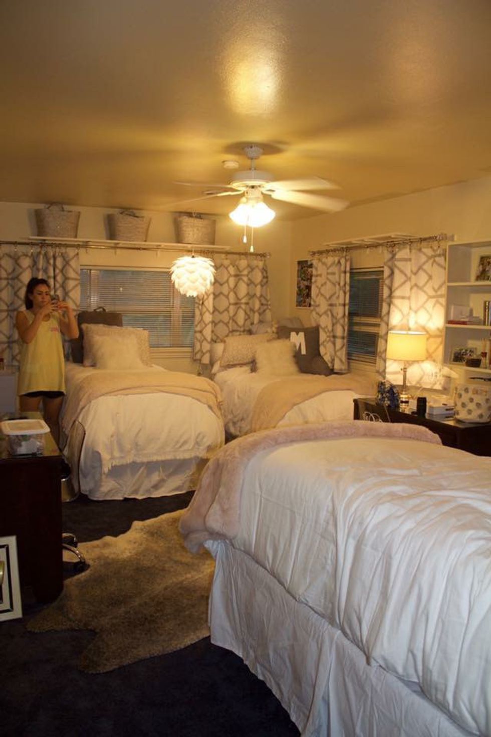 9. Once I got the ball rolling with unpacking, I was on a mission. With the help of my parents I fixed up my bed and began organizing my closet, which where things that I thought were going to be time consuming, but really weren’t. Surprisingly, the part that took the longest was hanging up my deer head and my cork board. I had bought some really intense command strips so I wasn’t worried about hanging them, but the command strips failed me and refused to work as they had advertised. My dad ended up nailing holes in the wall (oops) and he probably wanted to kill me as I kept telling him that my pictures were crooked and that he needed to tilt them.