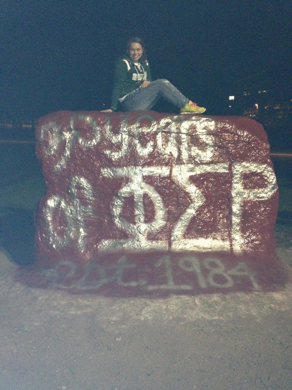 Every day a different group or organization paints the rock. It is a way of promoting what ever your organization stands for. You camp out just to get the rock to make sure no one takes it before you and to make sure no one paints over it. Definitely a must!