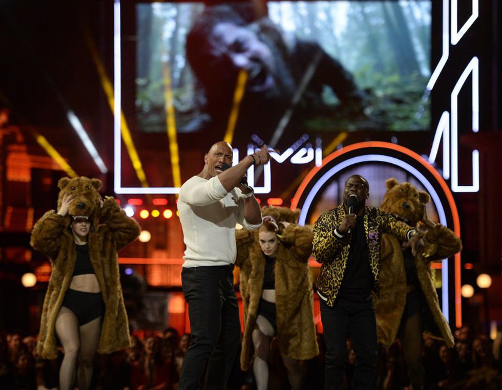 Kevin Hart and The Rock had quite a few choice words to start off the night. By choice words, I mean dropping the f-bomb every other word -- but that’s the Kevin Hart we all know and love. The set of the Movie Awards this year took place outside and not some auditorium or theater that they usually are in. I was extremely fascinated with how cool this set looked. I mean, just look at The Rock’s entrance! Imagine a stage that is in the shape of a circular boxing ring outside.