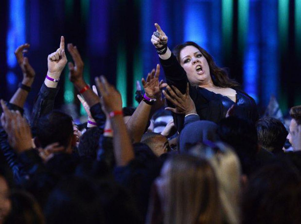 The Award for Best Comedic Performance was up next, presented by The Rock and Kevin Hart. This award went to none other than the extremely funny and talented Melissa McCarthy. We see Melissa yelling from a stage on the other side of the set -- "I can't get over there!” -- which led to a crowd-surf by Melissa over to the stage where she could accept her popcorn award.