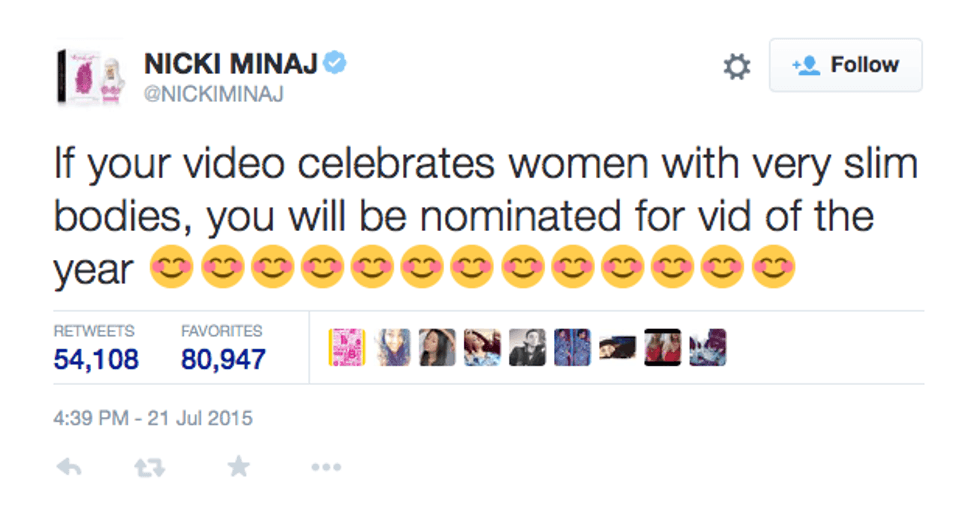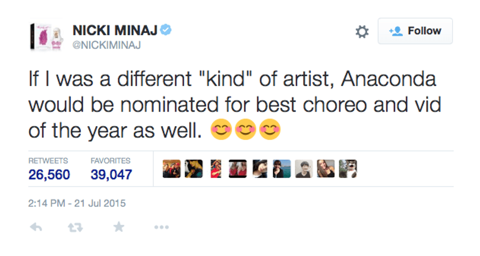 Yes, MTV chose the possible candidates and thus Nicki Minaj did have merit in calling the TV station out on Twitter. (as seen below)