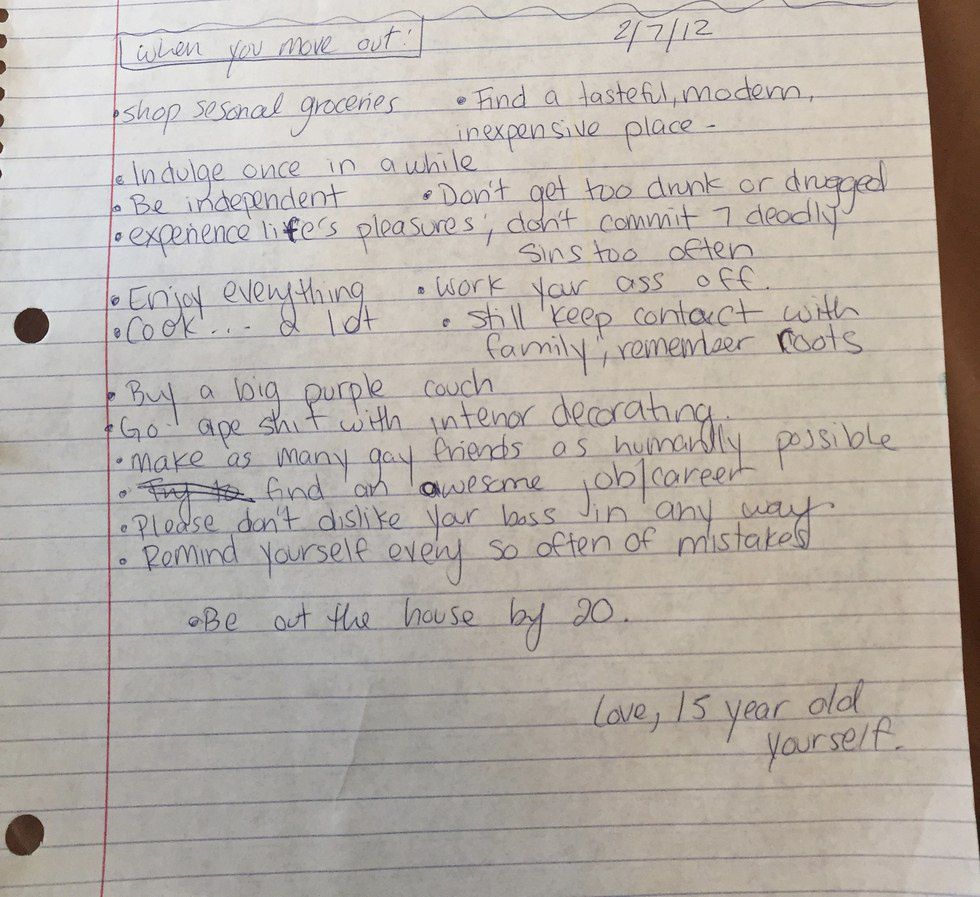 My perception on adulthood was immensely narrow-minded, though in a naive and innocent way. Many points on this list are doable, such as cooking a lot and being independent. Others, not so much. "Find a tasteful, modern, inexpensive place" is adorable. The same can be said about trying not to dislike a boss. It is especially humorous how I emphasized moving out by age 20.