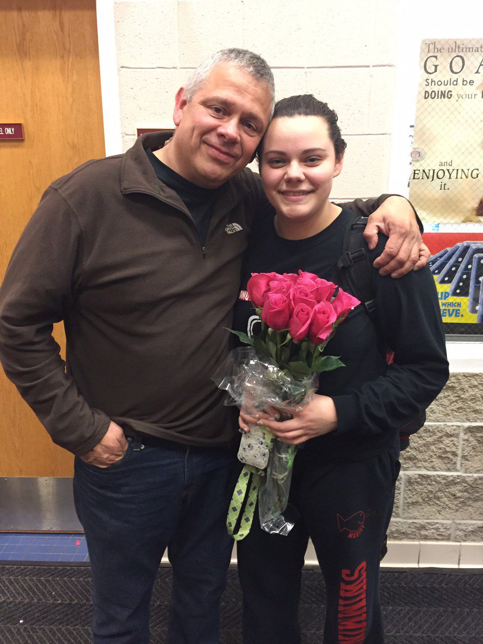 Pictured below: me and my dad after one of my swim meets. Below, starting on the left, is me, my dad, my mom, and my sister.
