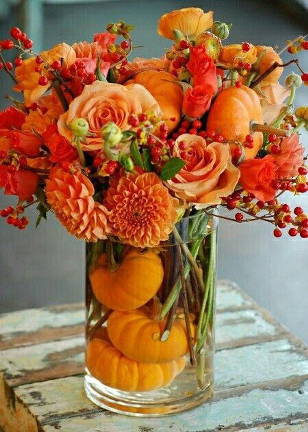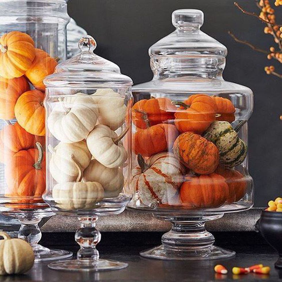 Smaller pumpkins can be stacked in glass vases or canisters to give your room an extra feel of fall. They not only give your space the fall feel but they look elegant and classy.