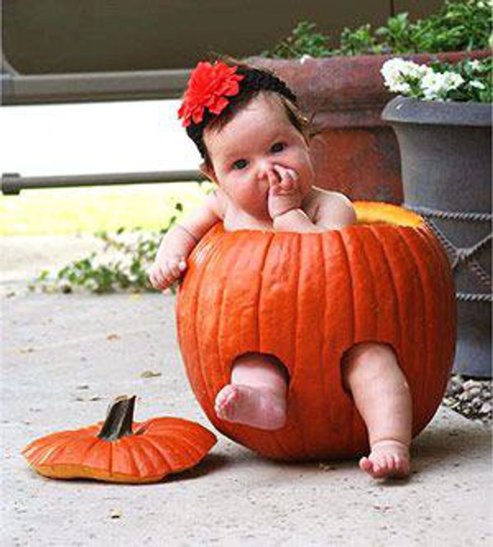 Pumpkins are more than decoration, they are costumes for small children as well. Babies who are coming into their first fall and Halloween always provides a good photo opportunity to get your child into a pumpkin. Making cute memories!