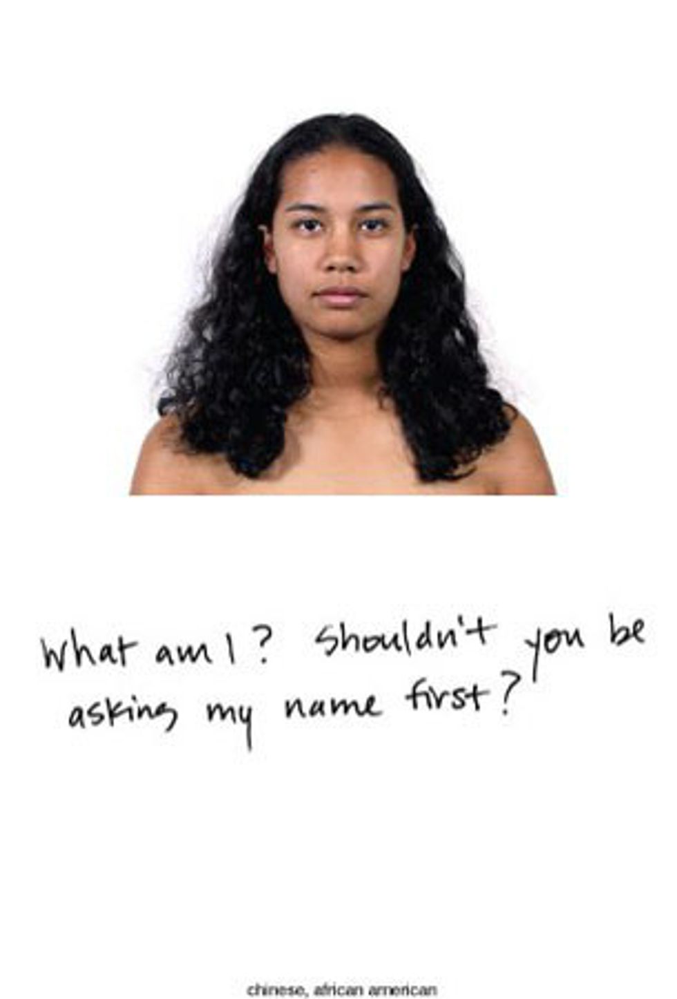 "What are you?" Though not intentionally rude, the question is asked to people of multiracial identities with a puzzled look on the inquisitor's face. Caucasians do not get asked where their ancestors are from, why should people of mixed races? It's simple; we live in a society with a history of social genocide and one that still persists on white privilege and either-or categories.