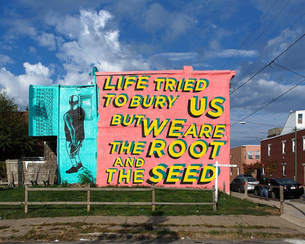 This mural is a part of the Ralph Brooks Revitalization project. The City of Philadelphia Mural Arts program worked with Connor Barwin and his Make The World Better Foundation and other community partners to create this mural with a powerful meaning.