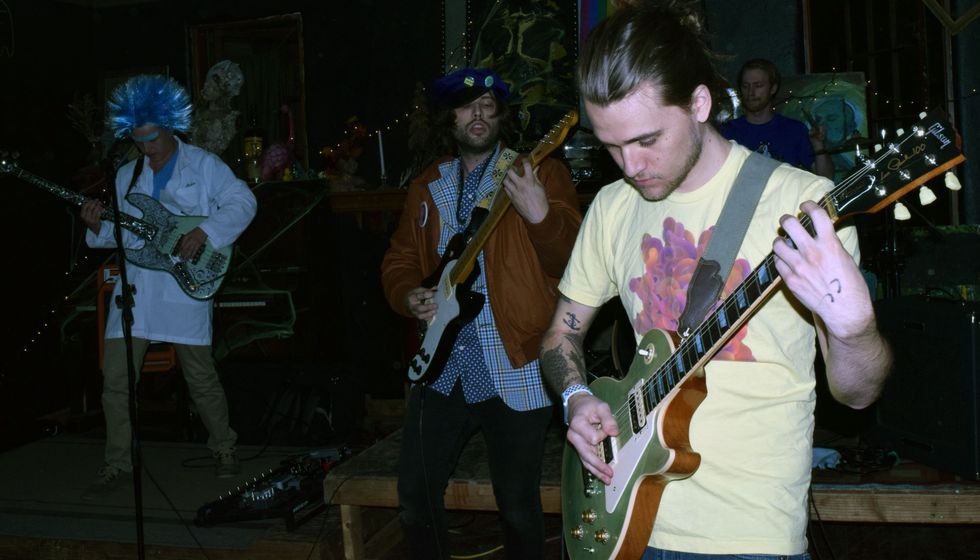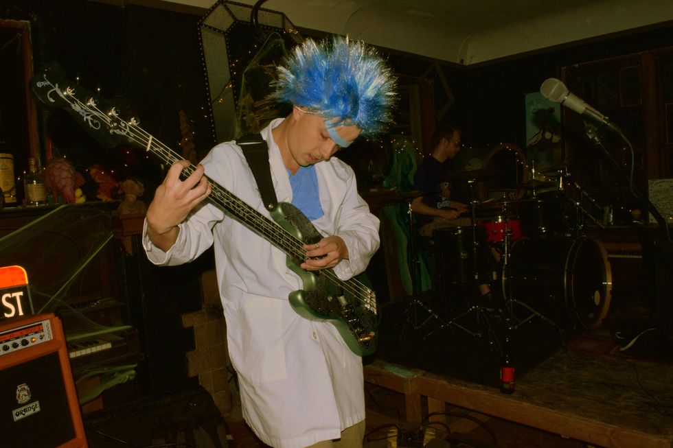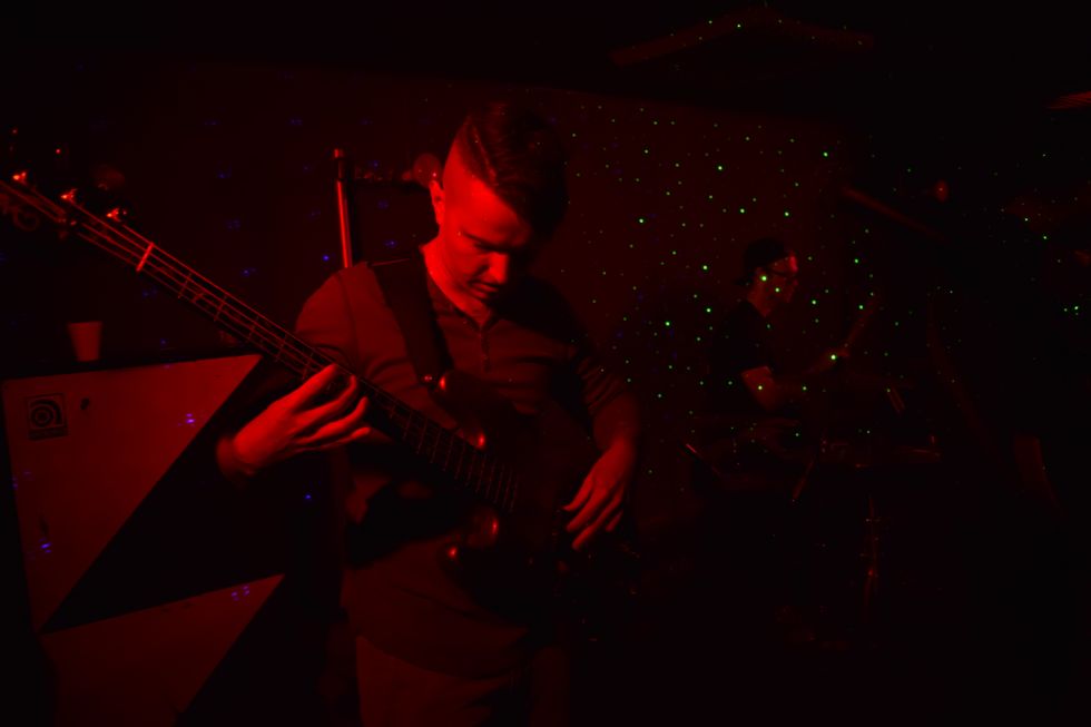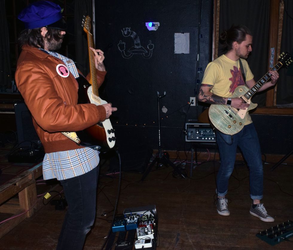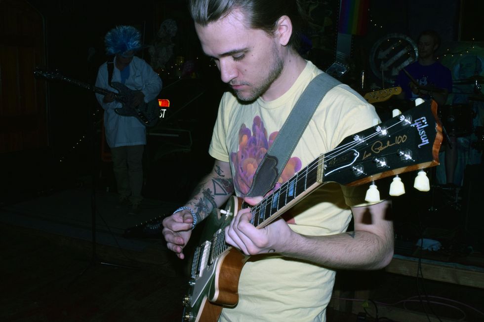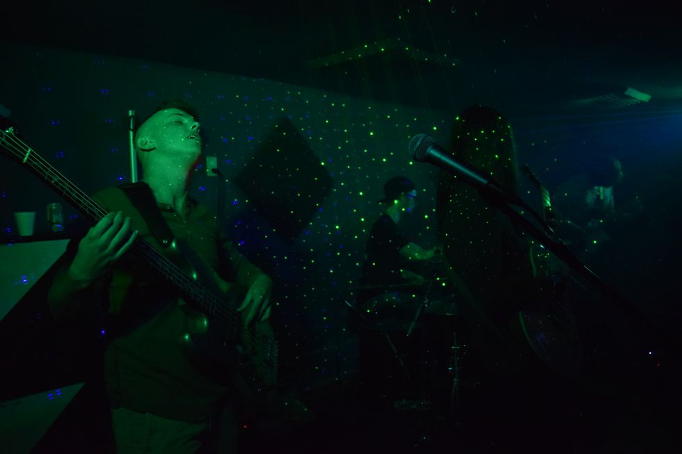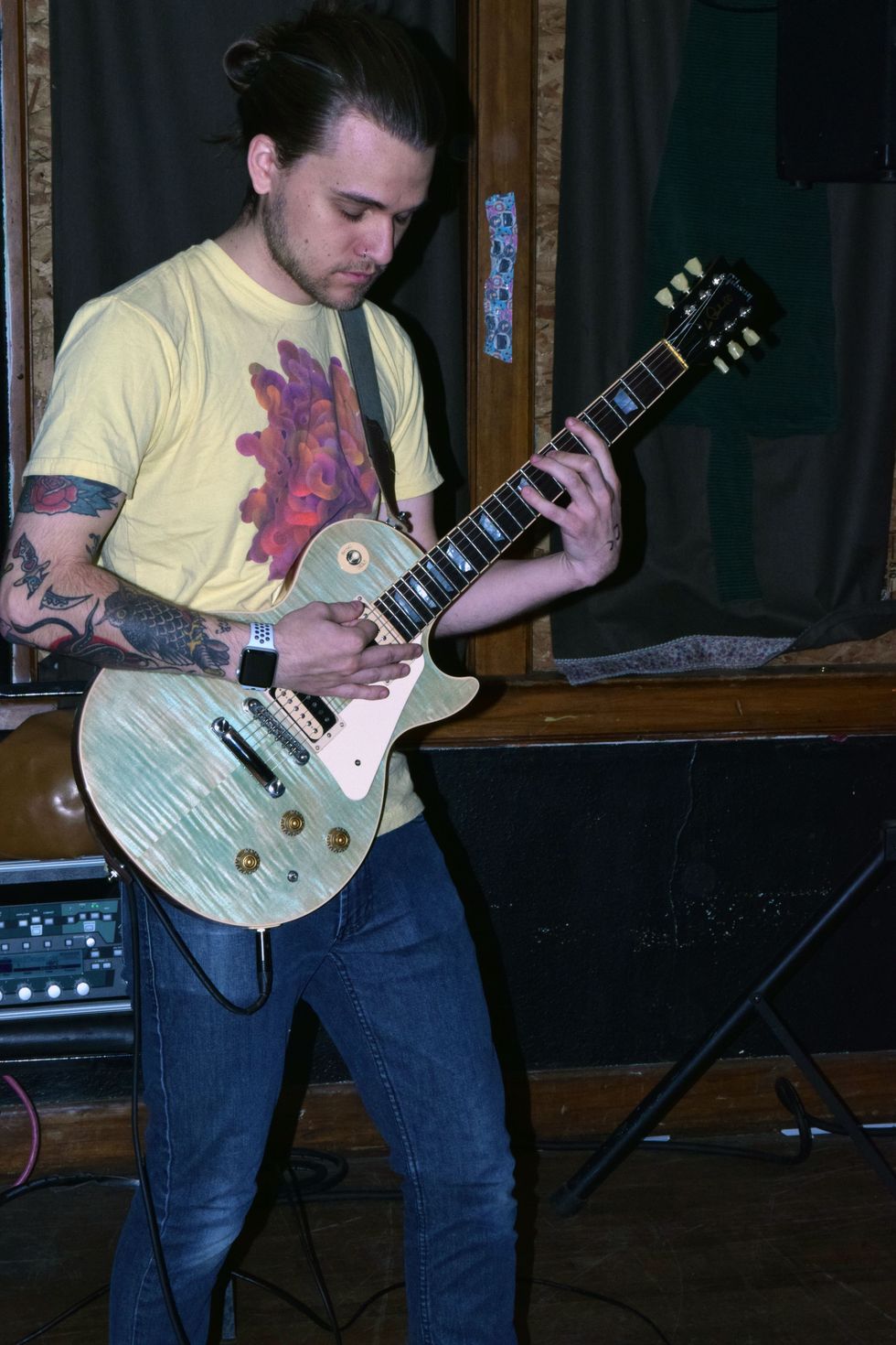 The band consists of four members, Andrew, Chevy, Michael, and Max. When asked what their favorite moment with the band was, Michael told me "the Halloween show from this year was absolutely incredible. It was the first time a circle pit has ever happened at one of our shows and Andrew and I were just desperately trying to keep our pedal boards safe." Andrew ended up just kicking his pedal board to the side to make sure it didn't get damaged by being stomped on by a mosher.