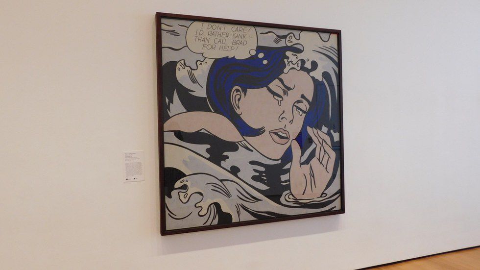 This is one of my favorite pieces at The MoMA. I love it because of the overall message it displays. The artwork showcases a comic image said to be from DC Comics' Secret Love #83, "Run For Love". It is a comic of a woman that is surrounded by waves and realizes that she is independent enough to where she no longer needs her boyfriend "Brad" to save her. The original comic was published in 1962 and a year after is when Lichtenstein, New York-based pop artist, published his own spin of the comic- but in artwork form. Drowning Girl is made with oil and synthetic polymer paint on canvas. This piece of pop-art is done by an art process called "Ben-Day dots". After sketching the exact picture from the comic onto canvas, Lichtenstein added Ben-Day dots to portray this woman was in a comic book. Drowning Girl is on permanent display at The Museum of Modern Art and has been depict as a "masterpiece of melodrama".