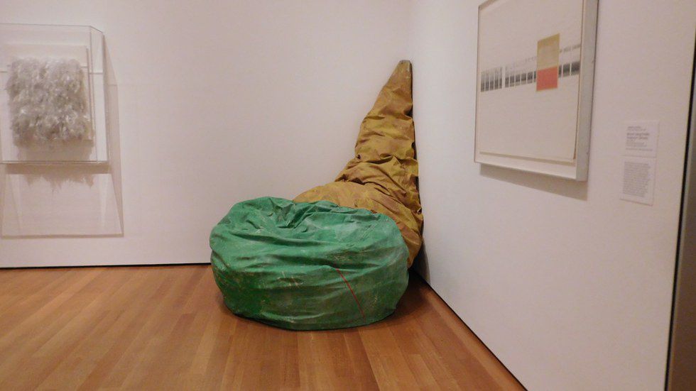 When I first saw this soft-sculpture, I questioned if I could sit on this beanbag that looked like an ice cream cone. After further research I suddenly did not want to sit on it anymore! This piece is made of polymer painted canvas stuffed with cardboard boxes and foam rubber. Oldenburg is known for his fun sculptures, which are usually everyday objects magnified in proportion. In the 1960’s, Oldenburg rented a gallery in New York to display most of his sculptures in and people knew it as “The Street”. He then got enough peoples attention and rented another gallery and named it “The Store,” filling it with sculptures that looked like everyday objects, such as the floor cone, floor burger, and floor cake. Oldenburg's art history is a major reason why his art is displayed at The MoMA. It also helps that Oldenburg’s brother, Richard Oldenburg, was the director of The Museum of Modern Art from 1972 to 1995!
