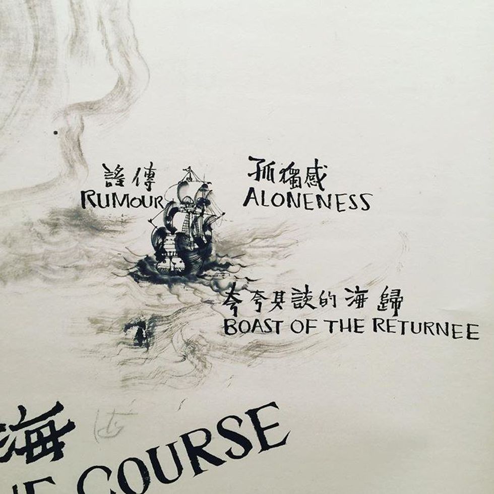 Seeing this installation felt like looking into a personal anthropological study guide; packed with detail and correlation, but also revealing of the artist himself. His interests, for example, evidenced by a continent dedicated to the history of print, photography, and cartography, from the coastal maps used by Zheng He to the first European Mercator projection map to . Qiu's origins in China is also reflected in the depth of his approach to Chinese history and Chinese interaction with the larger peninsula. Each panel felt like peering into a page from his diary, simultaneously mapping a world as well as an individual.