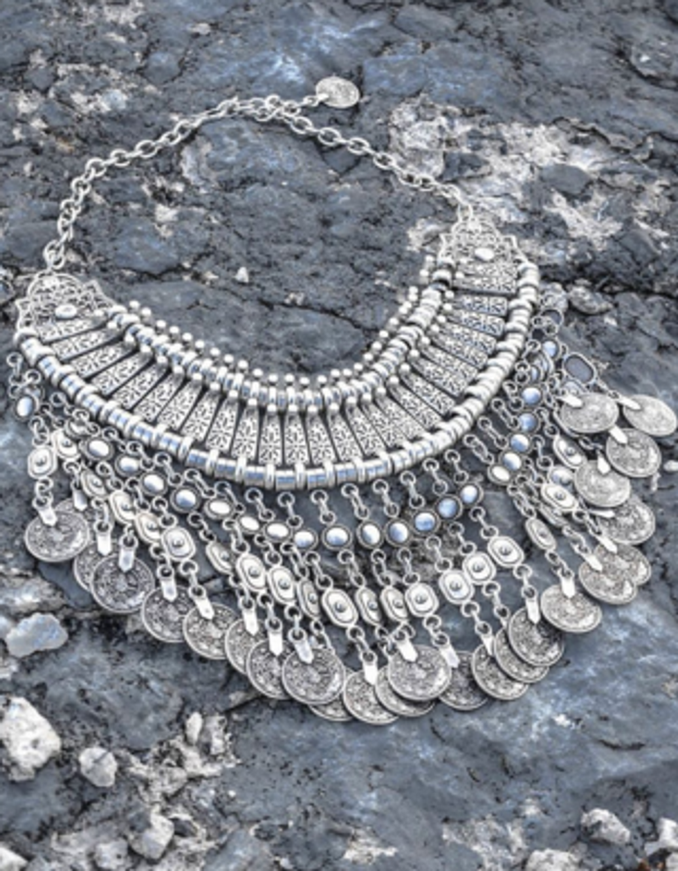 Need something to dress up your outfit, but don't know what to wear? This antique silver plated chunky bohemian gypsy statement ethnic Turkish coin necklace is sure to spice up your outfit.