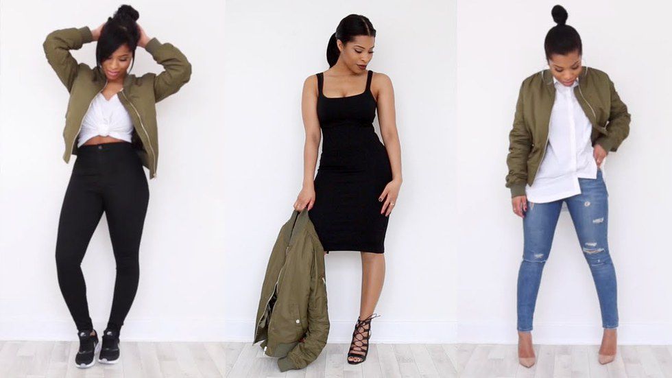 Seriously, you can pair a bomber jacket with almost anything. Casual, dressed up or even in sweats, your bomber jacket will still be the perfect addition to your ensemble this Fall.