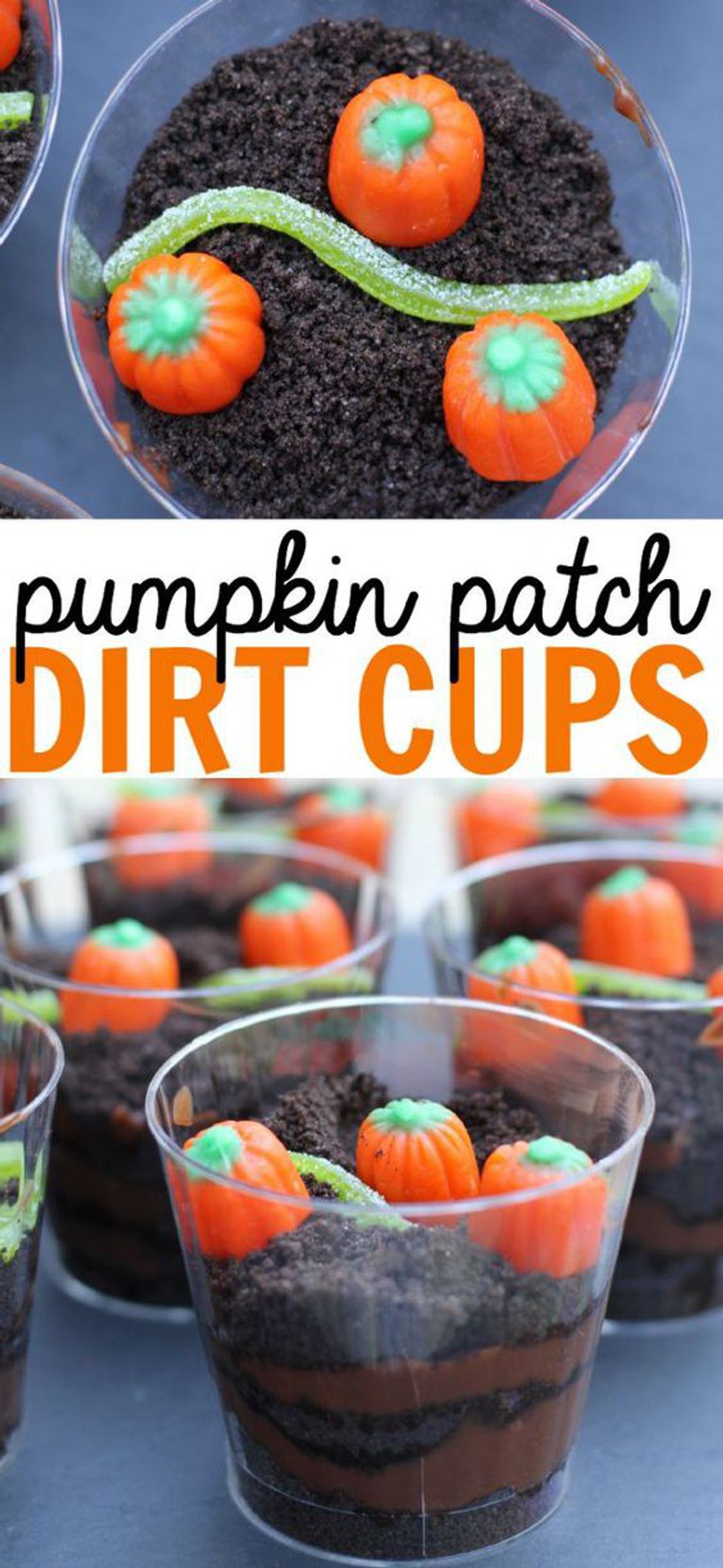 These pumpkin patch dirt cups bring back memories of halloween in elementary school! All you need is some chocolate pudding, crushed Oreos, gummy worms, and any additional halloween-themed gummy candies! Add sour gummy worms for a mouthwatering twist! The quick and easy recipe can be found here: http://www.icanteachmychild.com/pumpkin-patch-dirt...