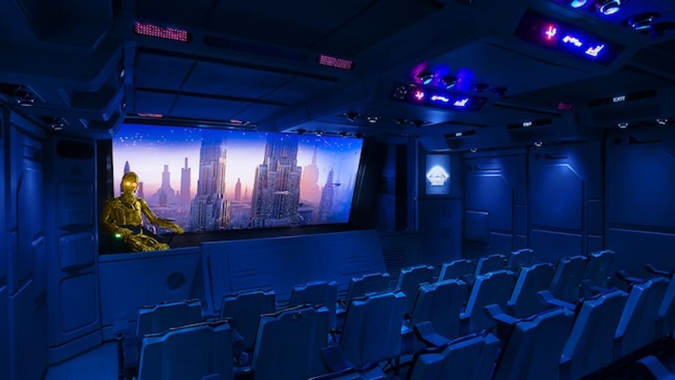 Star Tours have gone through some changes since the new Star Wars movies came out, but I still love it! From my experience, there are two different settings you could potentially get that are both very similar! As you escape from a Star Destroyer accidentally in an unauthorized star speeder, Kylo Ren or his stormtroopers try and stop you! You help the rebels in their fight against the First Order with C-3PO and R2-D2 as pilots. Going lightspeed is my favorite part!