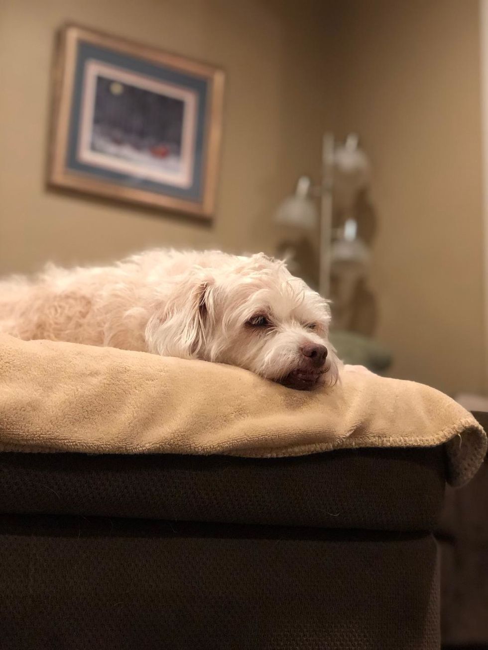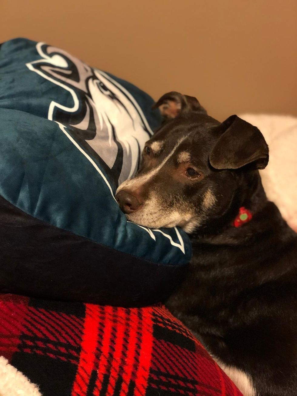 Mutts are always doing something that will make you laugh so hard. My dog, Mckenzie, always makes us laugh because she has to be a princess and put her head on a pillow when she lays down.