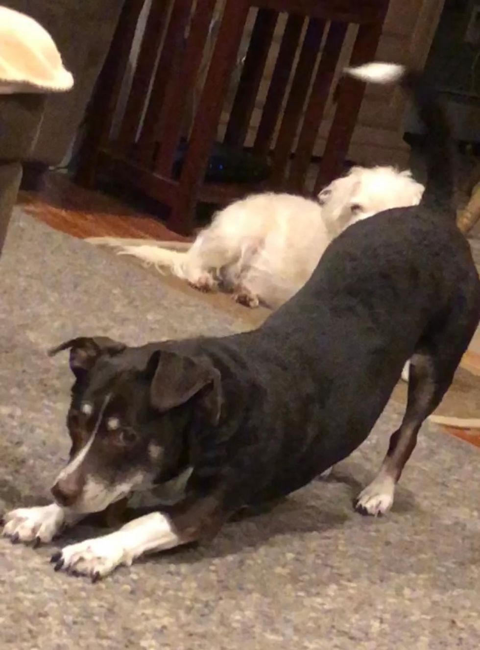 Whether it's plopping down on their back and acting silly or randomly sprinting up and down the stairs, mutts always seem to easily entertain themselves. They truly are unique in the way they entertain themselves too.