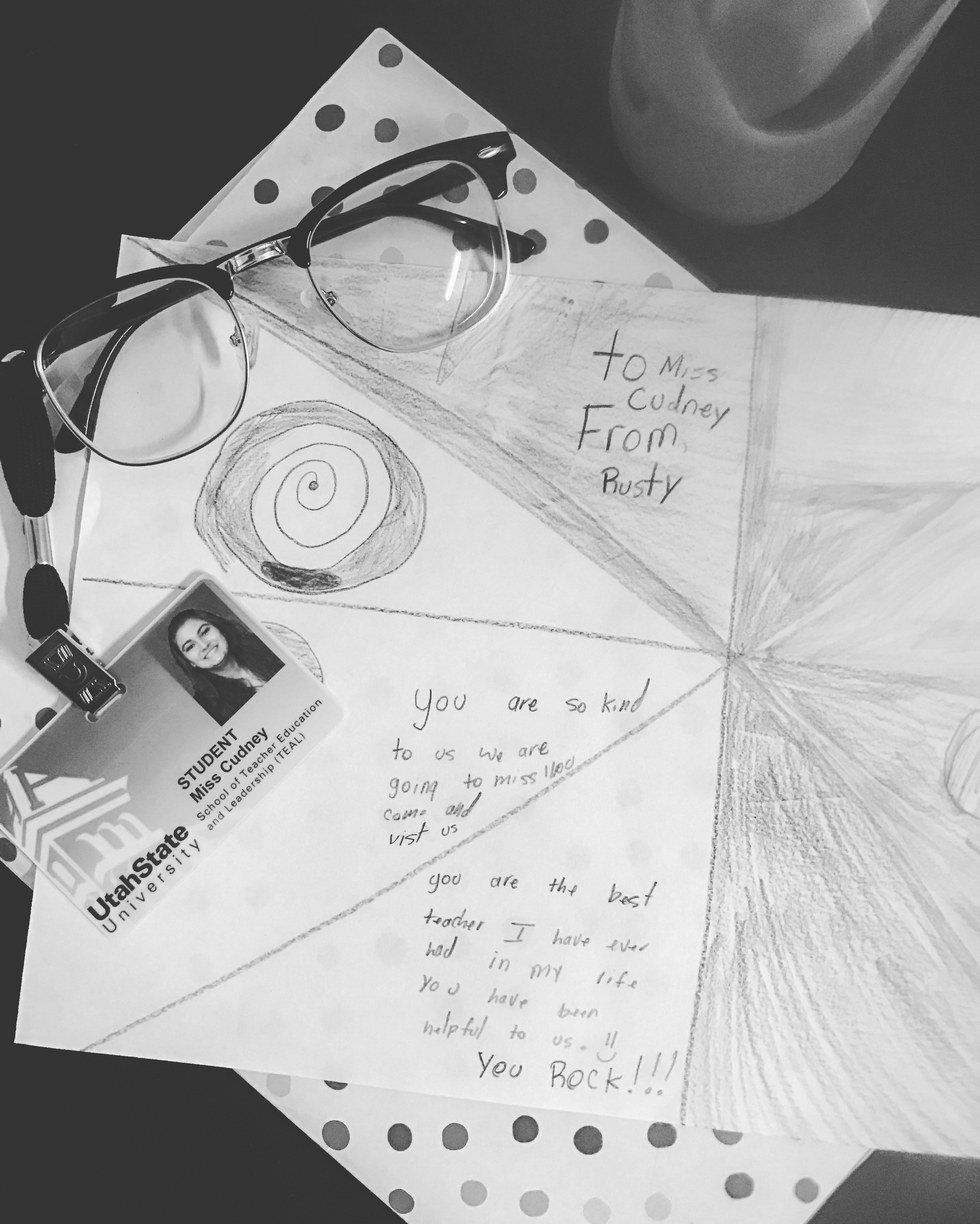 Never in my life have I been so exhausted, but I went to bed smiling, and it must have been there all night because I woke up with it too. I went back day by day, and learned more everyday. I taught the kids about erosion and weathering. I did a kids Olympics activity during recess. I yelled at kids for being too loud. I showed cool YouTube videos about sedimentary rocks. I gave spelling tests, and had a hard time putting the words into sentences. I watched kids fall off of swings, and chairs. I talked to kids about gymnastics, soccer, and football games. I hung up art projects that kids gave to me after their art class on Wednesdays. I sat in some parent teacher conferences, and learned about how some students fell far from the tree. I saw kids understand multiplication more than they ever have. I saw kids make friends, and memories. I saw a child try to write with her left arm when she broke her right arm doing a flip. I saw a student get 100% on a test when they usually had a 75%. I saw a student cry when they couldn't find their new jacket. I got more hugs then I can count. I learned 34 students names, and I loved those 34 kids more than I thought I could. I wanted them all to understand the material. I wanted the kids who didn't do their work to not have any missing assignments. I wanted the kid who came from a more crooked home than any child should, to make friends and be happy. I wanted the kids to do well, and I know they will.