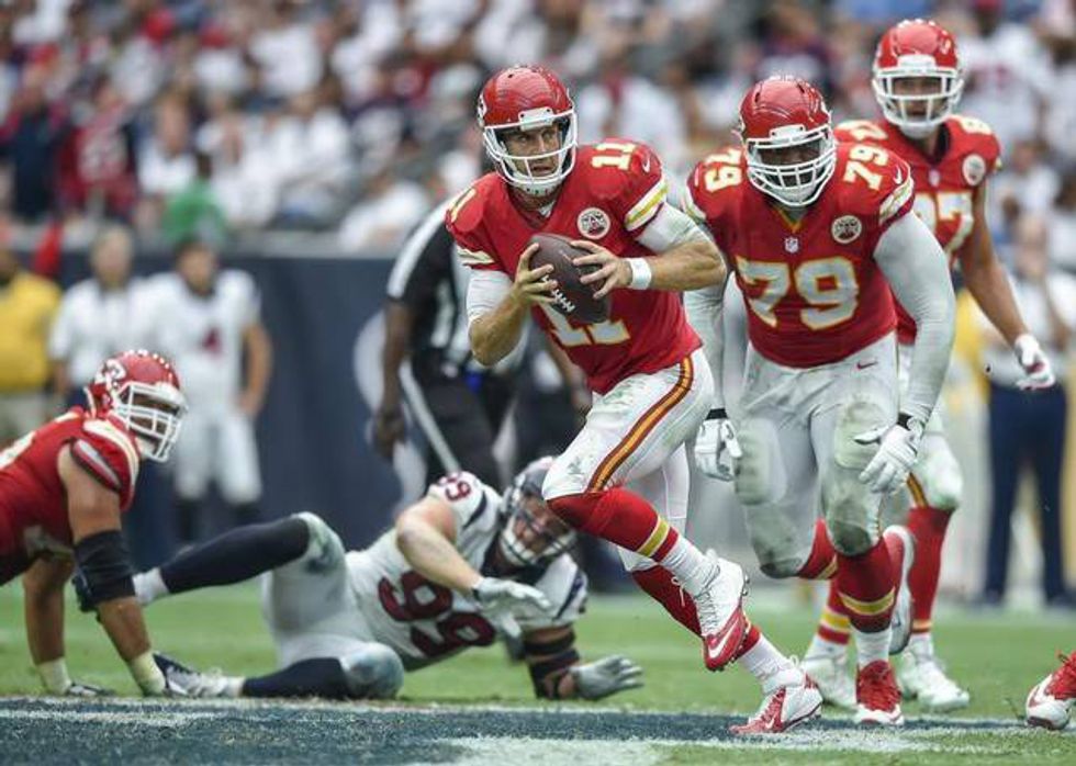 After the proverbial turnstile that was the Houston quarterback position this season (four: Brian Hoyer, Ryan Mallett, T.J. Yates, and Brandon Weeden), the team from Texas has actually made it to the playoffs. Still, it won’t be enough to beat the hottest team in the NFL. Alex Smith will march into Houston and bring the Chiefs their first playoff win 1994 and his own first win since 2012.