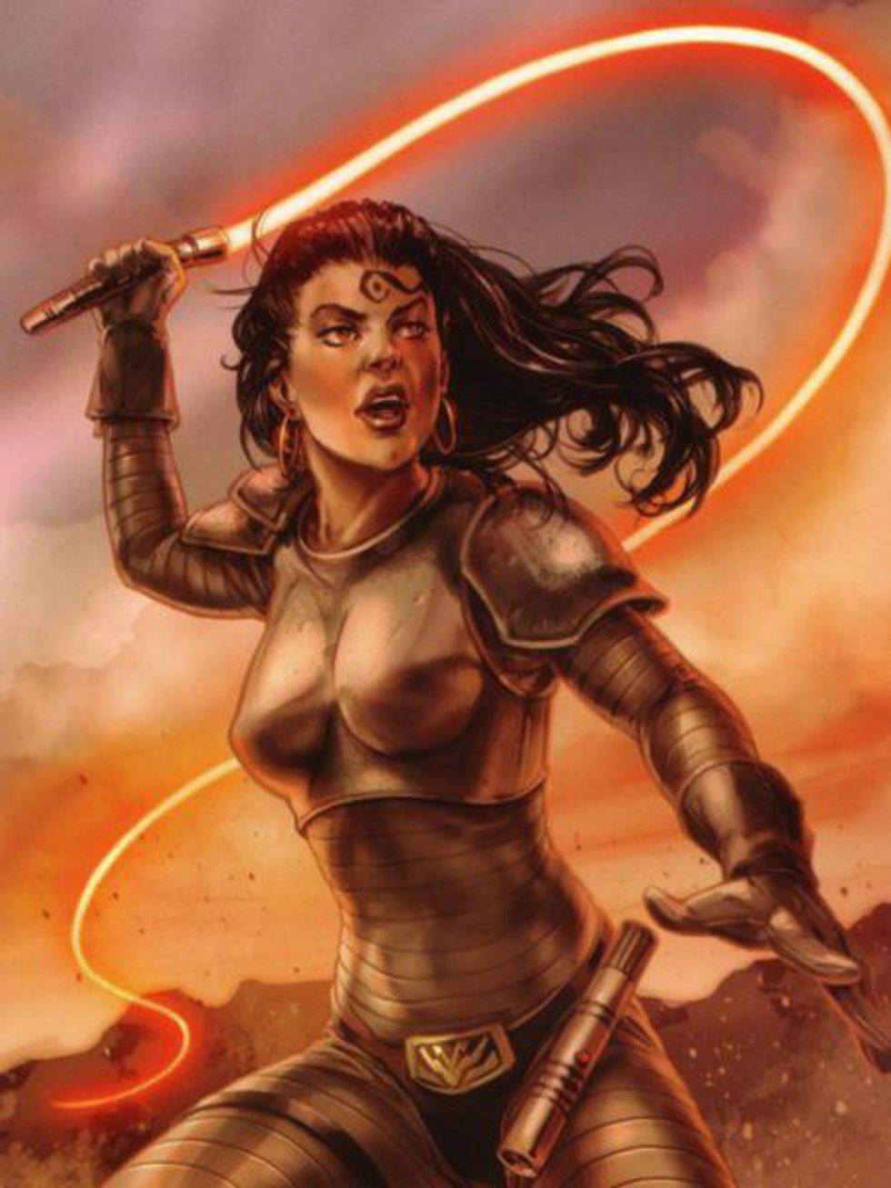 This form of weapon is utterly exotic and masochistic, even by the standards of a lightsaber. This weapon featured nearly as many drawbacks as it did advantages, requiring nothing less than mastery of its techniques. The lightwhip was great for ensnaring the opponent and preventing them from parrying their own blade, but its flexible properties made it difficult to cut through anything thicker than durasteel. It was also not the best defensive blade when the opponent went on the offensive. The most notable user of the lightwhip was Sith Lady Lumiya, who reinforced her energy blade with steel tassels for extra efficiency against Jedi Master Luke Skywalker.