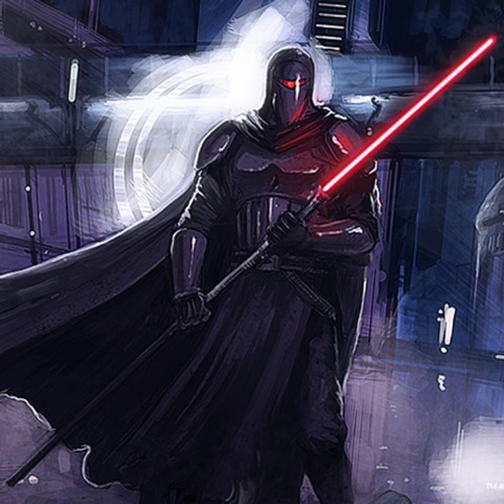 This design was made famous by Darth Maul in "The Phantom Menace," and it was arguably the coolest design for a lightsaber to appear in the films prior to "The Force Awakens." This staff-like configuration gave the wielder immense control of the immediate space around them, and it has been demonstrated as an effective tool for dealing with multiple adversaries at once. With that in mind, I could easily see Rey designing her own lightsaber in a similar fashion. Her skill with her personally crafted staff made short work of the scavengers on Jakku that tried to gang up on her. It would also draw a parallel between her and Jedi Knight Bastila Shan from "Knights of the Old Republic," a most famous RPG from 2003.