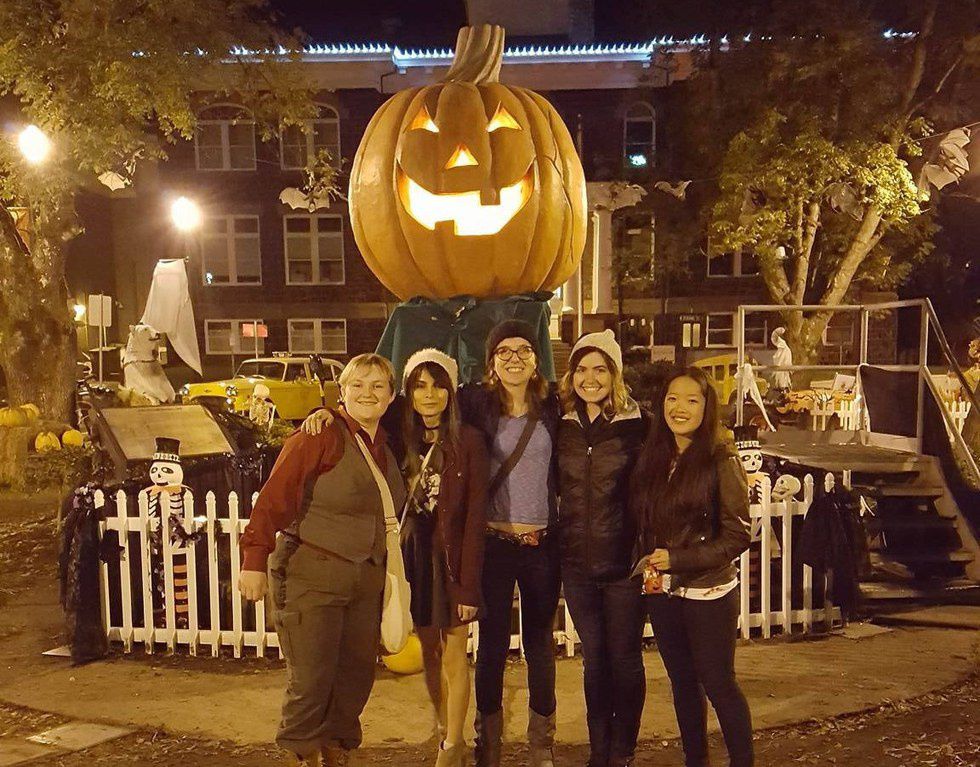I remember screams. I remember people banging on the walls and clowns following us at every turn. I tried to run back to the entrance hurdling the group with, but somehow we kept moving. More people came out with masks. One of my roommates cut herself as we made it to the exit and to celebrate our rush of adrenaline we took a picture in front of the town pumpkin.
