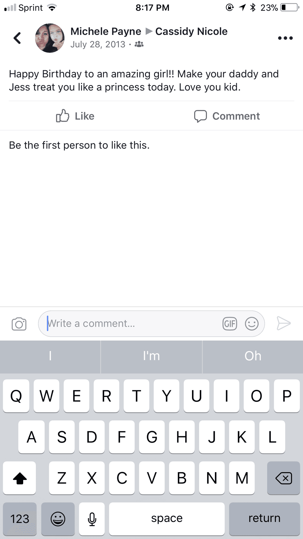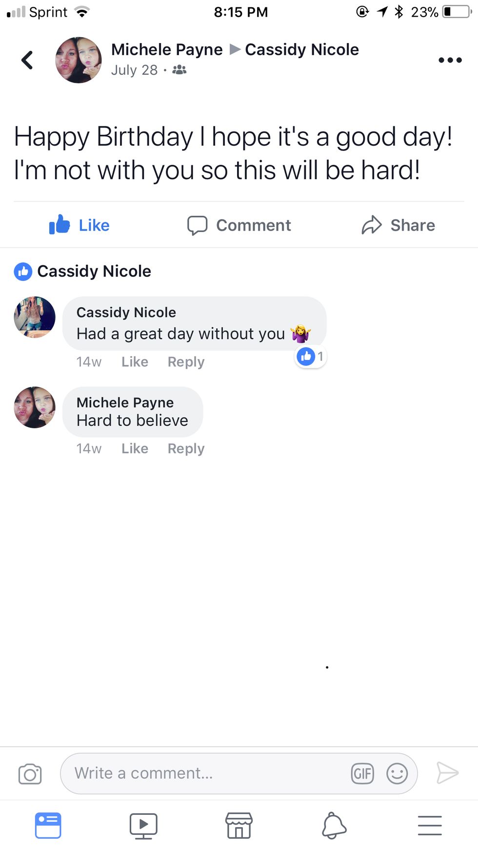 Michele is everything I would want in a mom. She goes to every game of my little cousin's, she signed her daughter up for dance when she was little, she has been with her loving husband since she was 15 (she's 42 now- holy crap!)