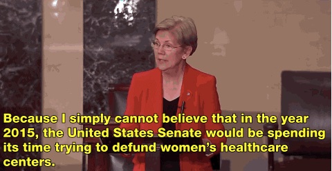 (Elizabeth Warren speaking about the Planned Parenthood Defunding Bill)