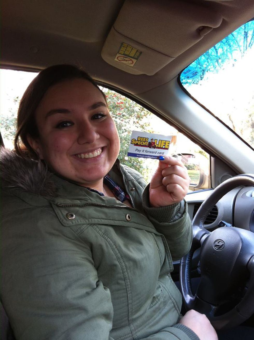 A few weeks before my accident, I found this "Pay It Forward" card on my school's campus. Ironically, my friend had taken this photograph of me and posted it just days before the accident. I had kept this card on the dashboard of my car, and it was there the day of my accident.