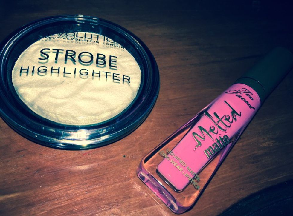 I love lip makeup! It's my absolute must-have! I have several favorites but, recently, I've been using Too Faced's "Melted" liquid lipstick line! It's amazing and my number one recommendation for a good liquid lipstick that is vibrant, isn't very flakey, and LASTS. (You can see my "1998" shade in the pic above, but I also own their "Queen Bee" shade.) For plain lipstick, I really love Smashbox. For other liquid lipglosses or lip toppers, I use Lime Crime's Matte Velvetines and their Diamond Crushers as well as Urban Decay's Vice Lip Topper in "White Lie." Last, but not least, my sworn lipgloss to swipe on for a quick fix is Victoria's Secret's Beauty Rush Tubes (SO SHINY AND GLITTERY!).