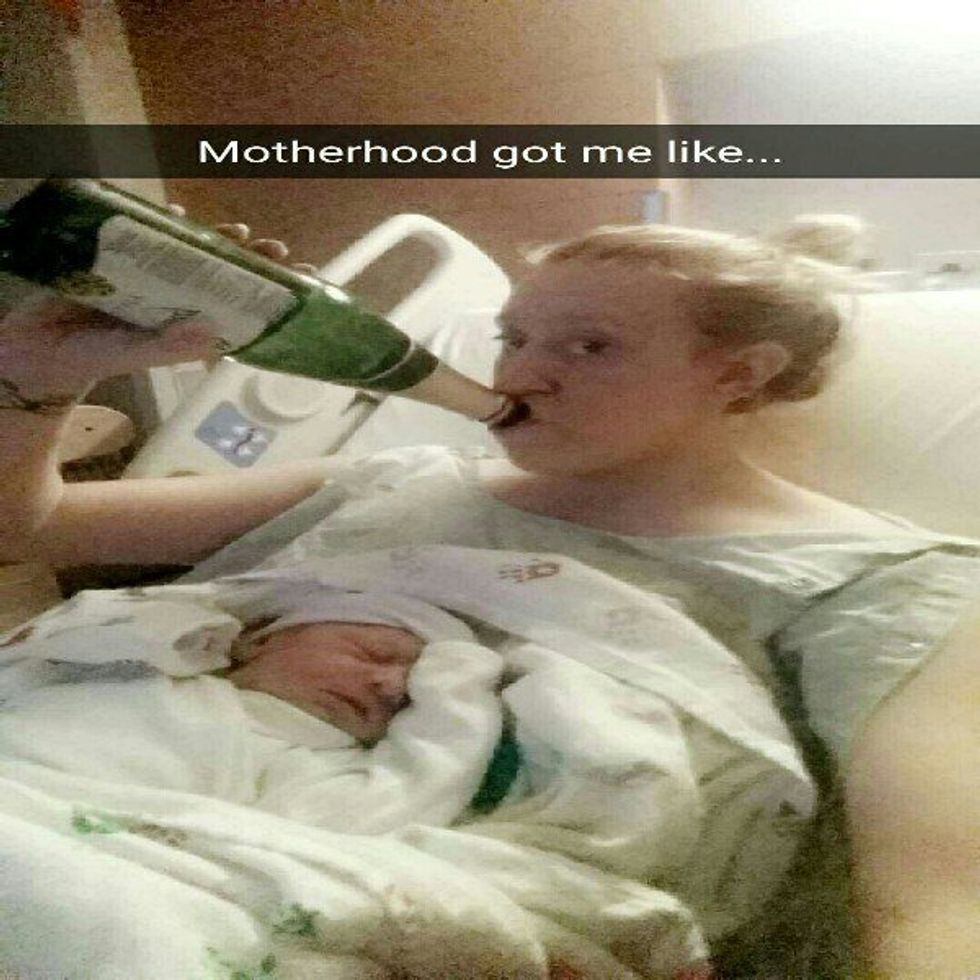 After I gave birth, I kept writing. I wrote about the day I went into labor. I wrote about how I hated her for coming late and them having to induce me. I told her about how upset I was that after thirteen hours of labor she came out looking like her goddamn dad. But I also told her about how I didn't even care because she was there and she was mine and she was the most beautiful potato-looking thing I had ever seen. After I gave birth, I started including pictures with the letters I would write to her. There's a few super cute ones of when she was first born. There's one of her and my roommate on Halloween and they're both covered in fake blood and she's laughing, there's some of her screaming, one of me holding her upside down. The funny pictures. The pictures you actually remember taking.