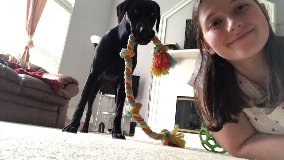 I fell in love with dogs when I started working at a dog daycare in Marietta. I grew up with cats, so I wasn't sure how I felt about dogs until I got my job. My job has opened a door of friendship and love that isn't easily obtained. I work with about 30 dogs at a time, who are the sweetest, yet sometimes trying, dogs I've ever met. However, that wasn't enough for me. I left work and came home to myself and no dog. I got a puppy and fell in love with her.