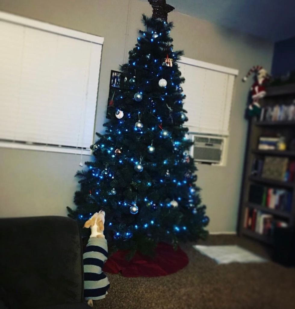 His favorite holiday is Christmas because of the tree ornaments and the sweater he gets too wear.