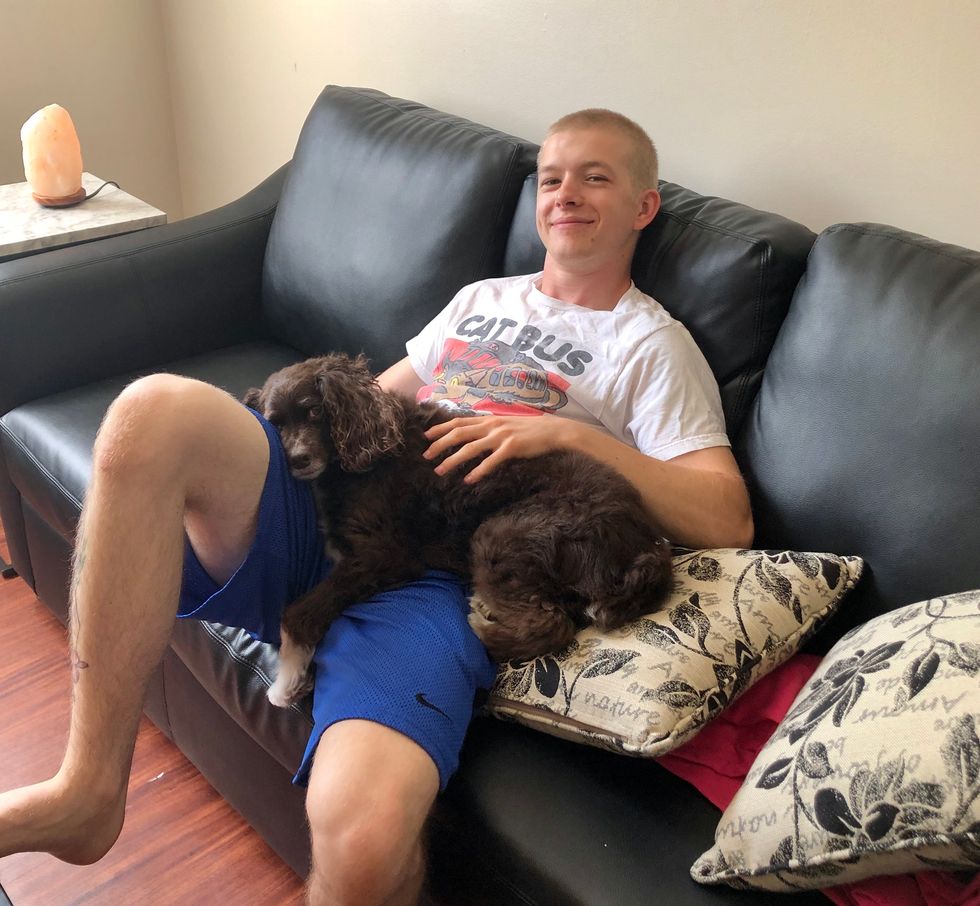 Ever since she was young, she loved to sit in my lap. I can do homework, play video games, or watch TV and she'll be right in my lap. As long as she's touching me, she's relaxed.