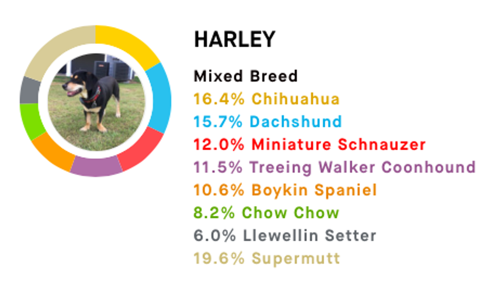 Another cool thing about the Breed portion of this DNA kit is that it gives you a detailed summary of each breed your dog contains. This helps you see where each breed comes into play because although Harley doesn't necessarily look like a Chihuahua or Miniature Schnauzer, his personality characteristics may have come from those breeds. It's a cool way to see which breeds gave your dog it's looks, personality, weight, body features, etc.