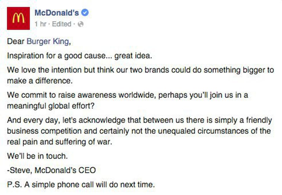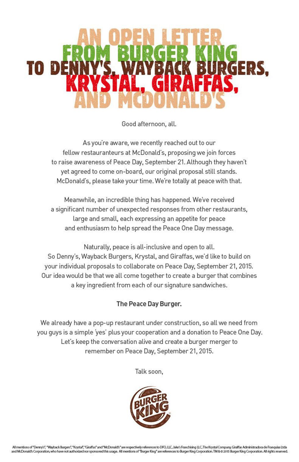 However, this is not the end of this story. Oh no, Burger King will not give up. They had a goal and they wanted to achieve what they set out to do. THEY WROTE ANOTHER LETTER. They decided to reach back out to McDonald’s and see if more restaurants would be interested in picking up what they were putting down.