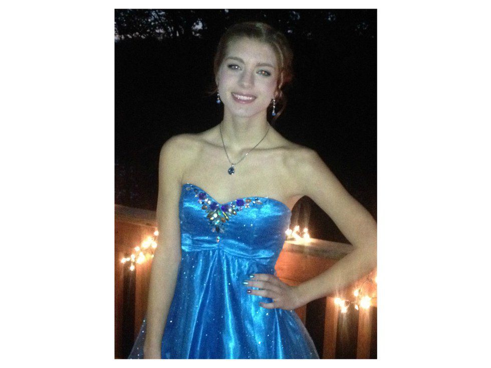 The start of Sophomore year came around, and if I knew what I know now, I would have told myself to prepare for the worst year of my life. I began restricting so much that I would go a week without eating. I was running 10 miles twice a day, on no food, and barely any water. I was afraid of water. I thought that water would make me gain weight. When Homecoming came around, I was about 112 pounds. I barely remember that night. I remember being very unhappy with my body, but I couldn't do much to help that. As you can see in this picture, I couldn't just smile. It was faked. You can clearly see that I didn't have much fat on my arms, and you could see the ghostly look (even with makeup on) that the Anorexia gave me.
