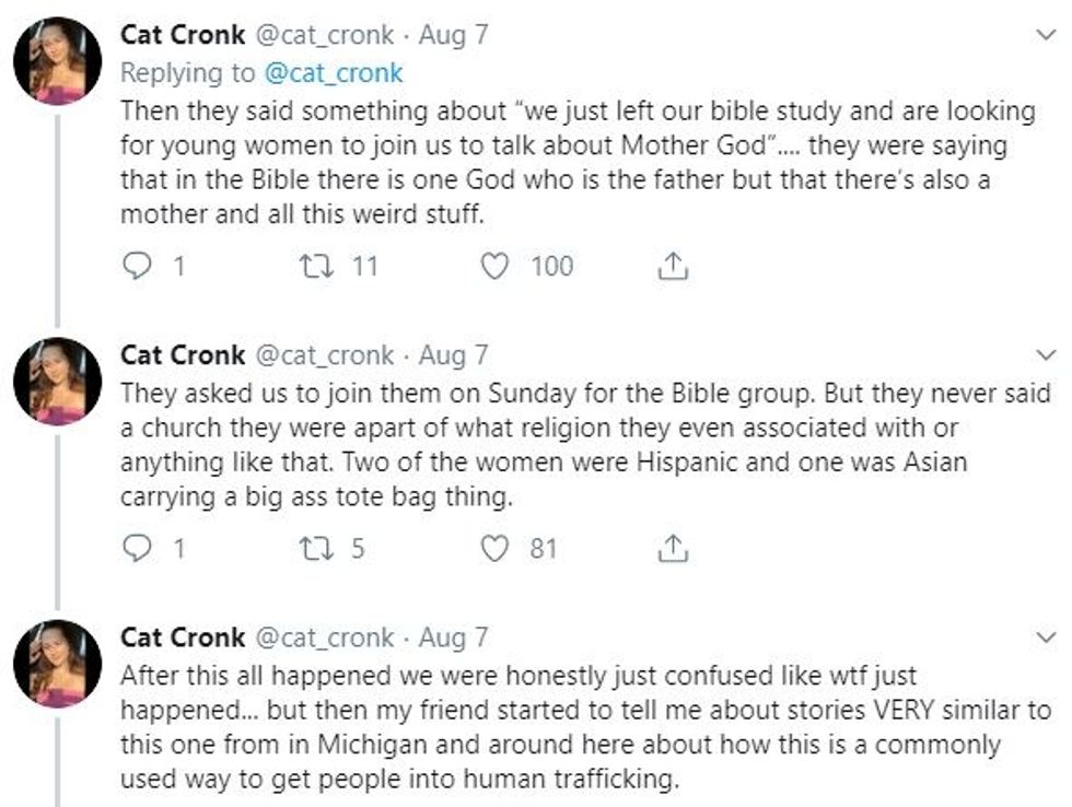 At first, I thought, "No way this is true." But then I did some research. Not only is this "church" often referred to as a cult, this ploy is a suspected trafficking scheme. After talking to my mom, a trauma coordinator at a local hospital, she informed me that her team works with the local county police force and our health department with these issues because sex and human trafficking has tripled in my county within the past year.