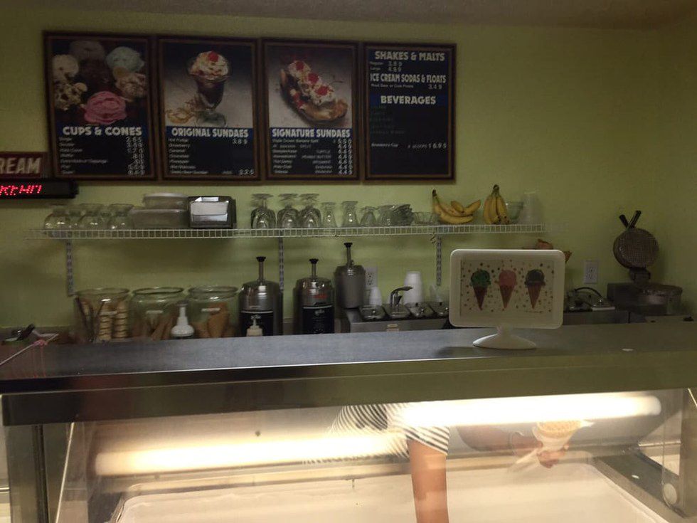 The Adirondack chairs, the fire pit for when it's winter, and the huge ice cream cone out front is also what makes your establishment homey, unique, and a great place to just relax and enjoy the day.