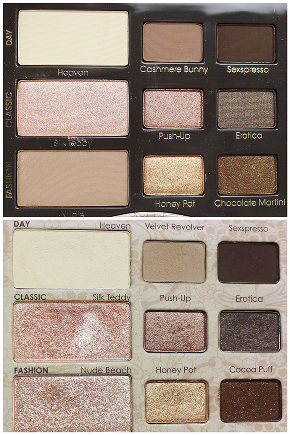 Gorgeous palette with some of my favorite highlight shades. They did recently update this one, and exchanged three of the shadows to new shades. Top is the new version, bottom is the original. I have the bottom one.