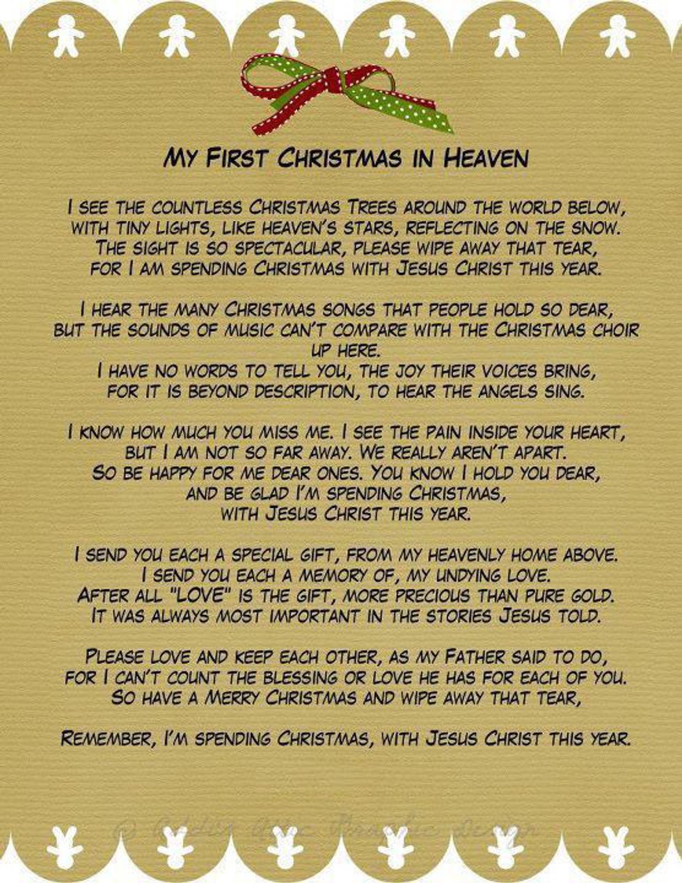 Though you are physically gone, I must cherish my remaining time with those who are thankfully still a part of this special day. I know you would want me to. That's what Christmas is all about. Though this holiday may never be the same without the ones you love, when one tradition ends another one begins. That doesn't mean you'll ever be forgotten, because I'll infinitely keep your memory in my heart not only this Christmas, but everyday of the year. I'm confident you're okay up there, celebrating his decked out birthday party with Jesus himself. I'm confident you're not alone, surrounded by the plethora of angels spending their Christmases far away from home as well. And I'm confident you're at peace, which helps me to get through this first Christmas without you.