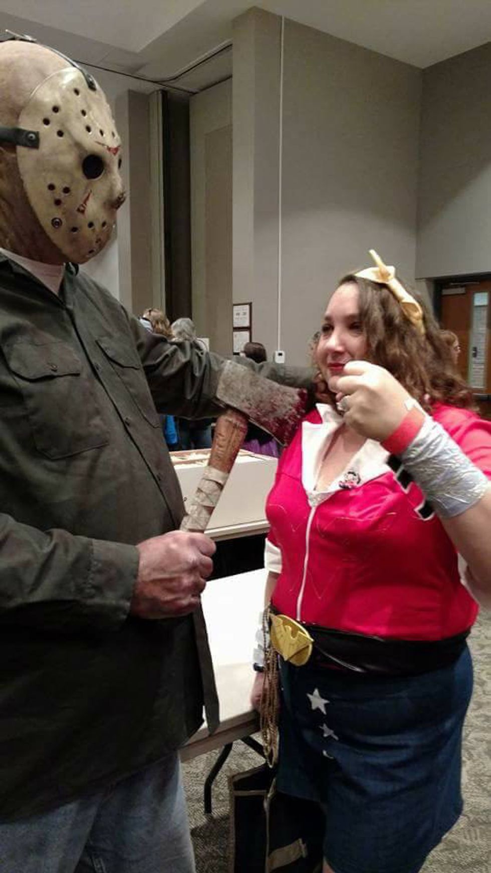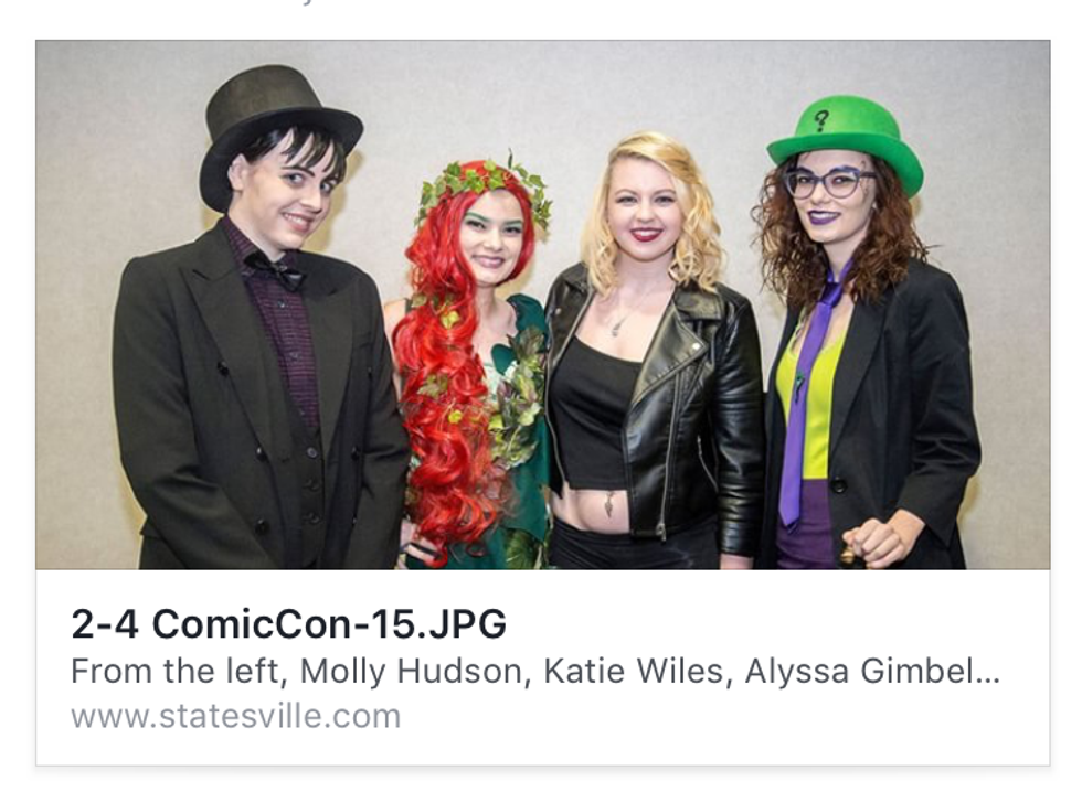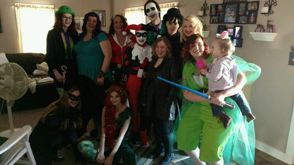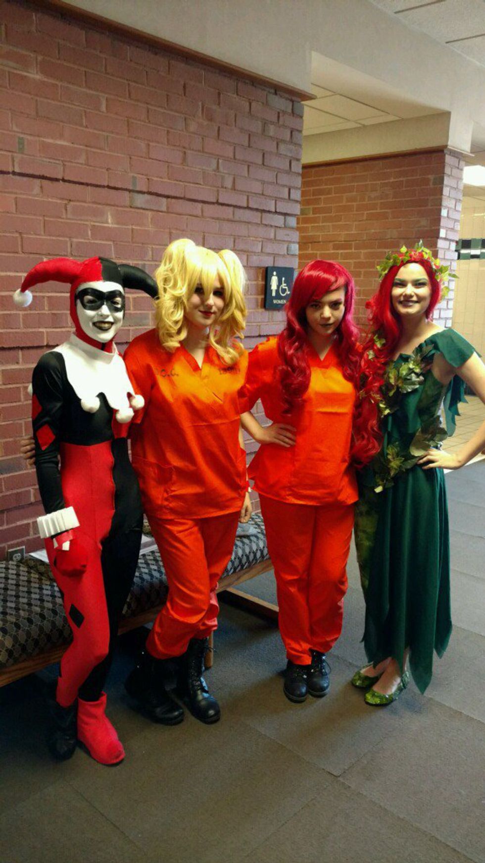 This past weekend I was able to travel back home with some of my close friends in order to attend my towns first ever Comic Con. We all stayed at my close friend Sammie's house where we spent the night and helped each other get ready the next morning. Our group had a number of characters we were dressing up as. We had Joker, Harley Quinn, Penguin, 2 Black Canaries, Catwoman, the Riddler, a fairy, Wonder Woman, a kitten, a Star Wars themed Poison Ivy, and the normal evil Poison Ivy. The con was held at our local Civic Center and it was said to have had over 1700 people attend. My group arrived right as the con opened and we got to meet so many other con lovers. Between buying collectors items, to taking pictures with random strangers; you could say we had a blast. Part of our group even made it into the local newspaper. The con was so successful the town is planning to have another in July. Below are just some of the pictures we took.
