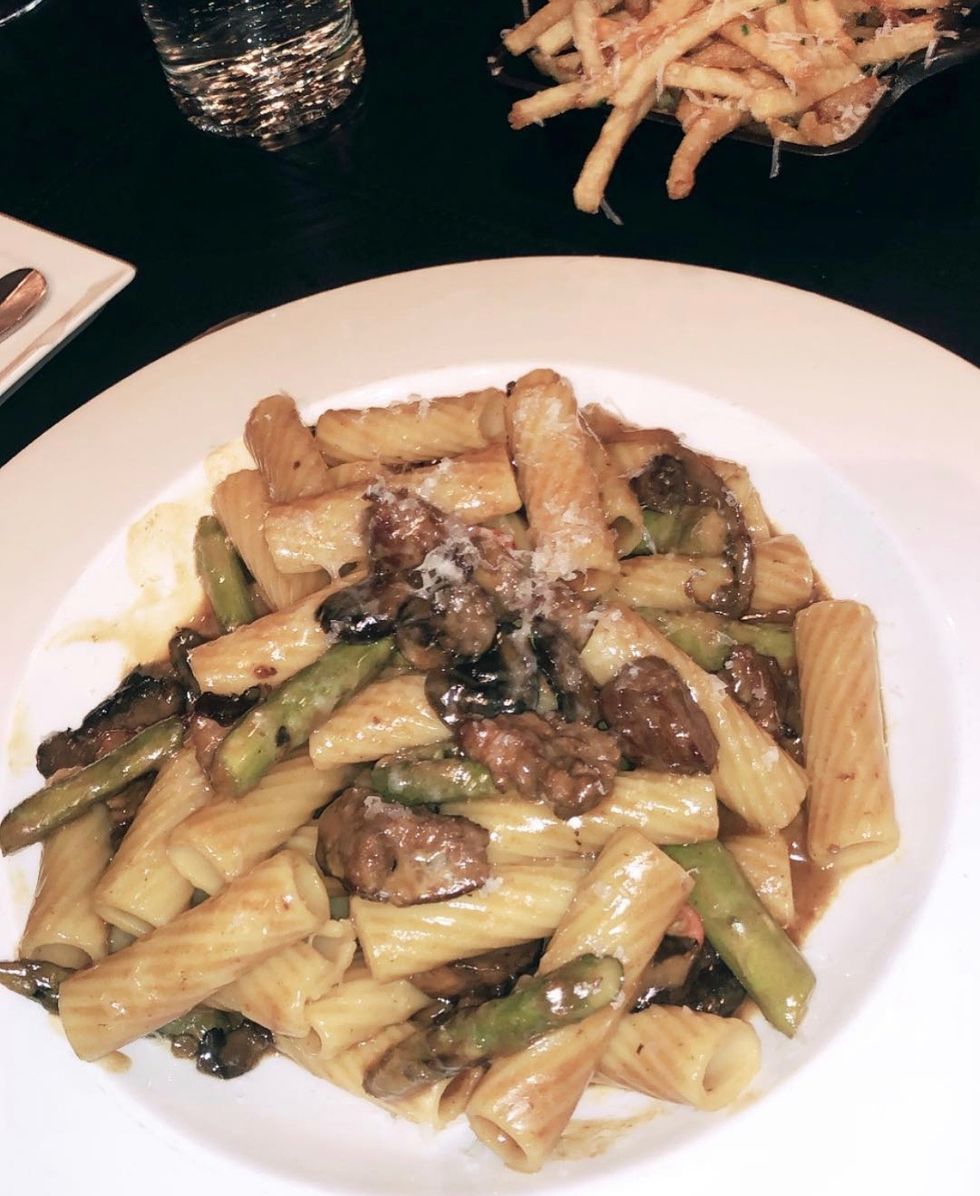 But, the true star of the show is the perfected toasted goat cheese round resting atop the pasta, its golden crust waiting to be broken into to release the creamy center.
