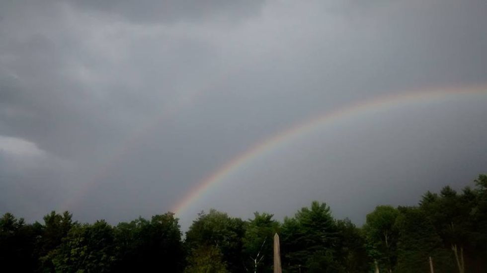 The rain had stopped all of a sudden. There was no letting up a little, but it had stopped. I looked up at the sky and I cried. In the sky was a double rainbow. In that moment, I had stopped crying. I took out my phone and took pictures so that people would believe my incredible experience.