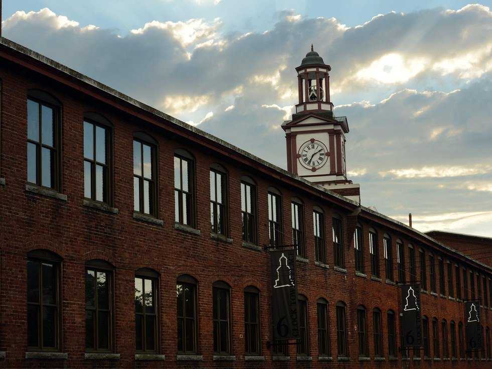 Upon driving through the downtown area, the mill, still more or less in use by many different companies, dominates the scenery. It's composed of several large, brick buildings that once upon a time were used for the production of first carpets and then wool. Its striking clock tower is very likely the oldest continuously hand-wound clock tower still in use in the country at over 100 years old.
