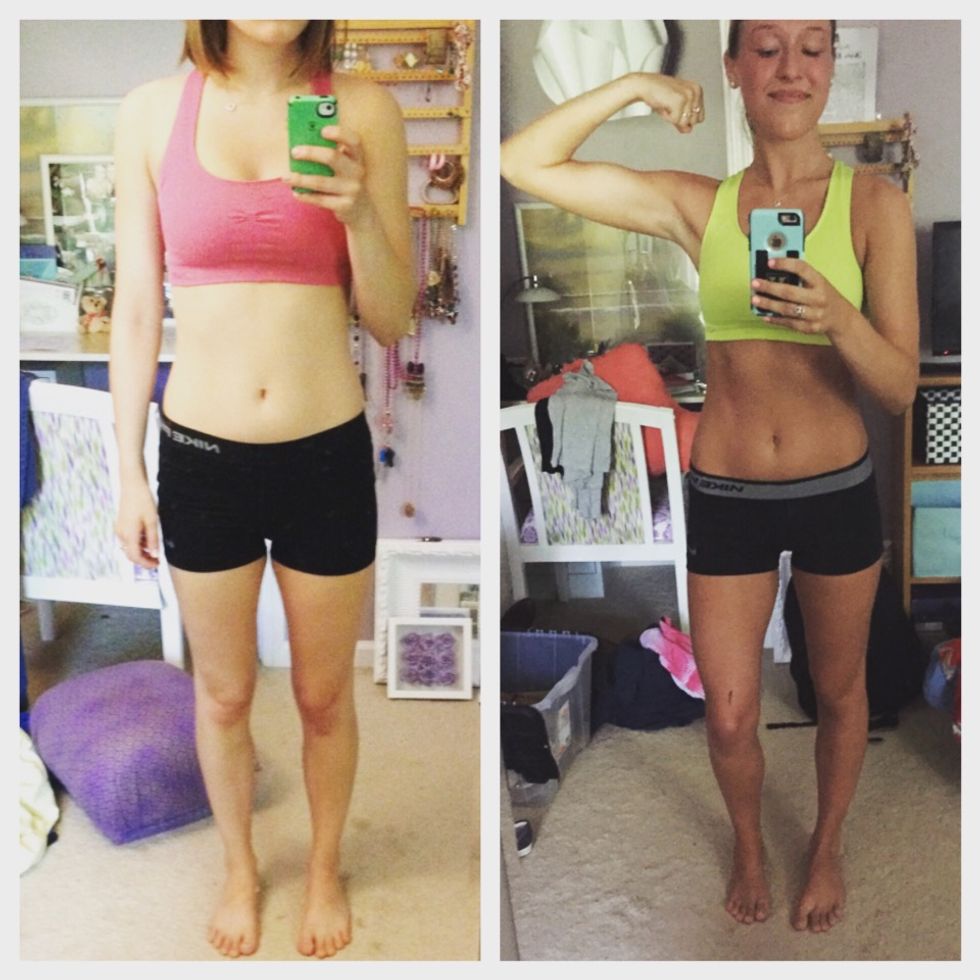 Fast forward to this past summer, and I told myself I would start working out again. I converted a spare room in my house to a little work out space because going to gyms usually intimidates me. Even after 12 weeks, going to the Rec Center here at school kind of makes me want to run and hide under my covers, but you have to get yourself out of your comfort zone. Besides weights and a make-shift bench (I used an ottoman), you really don’t need anything else to do the workouts. I told myself that this time I was going to do it right. I started off strong for the first couple weeks, and I made it farther than I did a year ago. I started to see real results; not only in my body, but in my mind. I gained confidence in myself and my abilities, and I know that was one of the most important things to Kayla when she made her guides. Everyone wants to look toned, but it’s better to be fit, healthy, and happy.