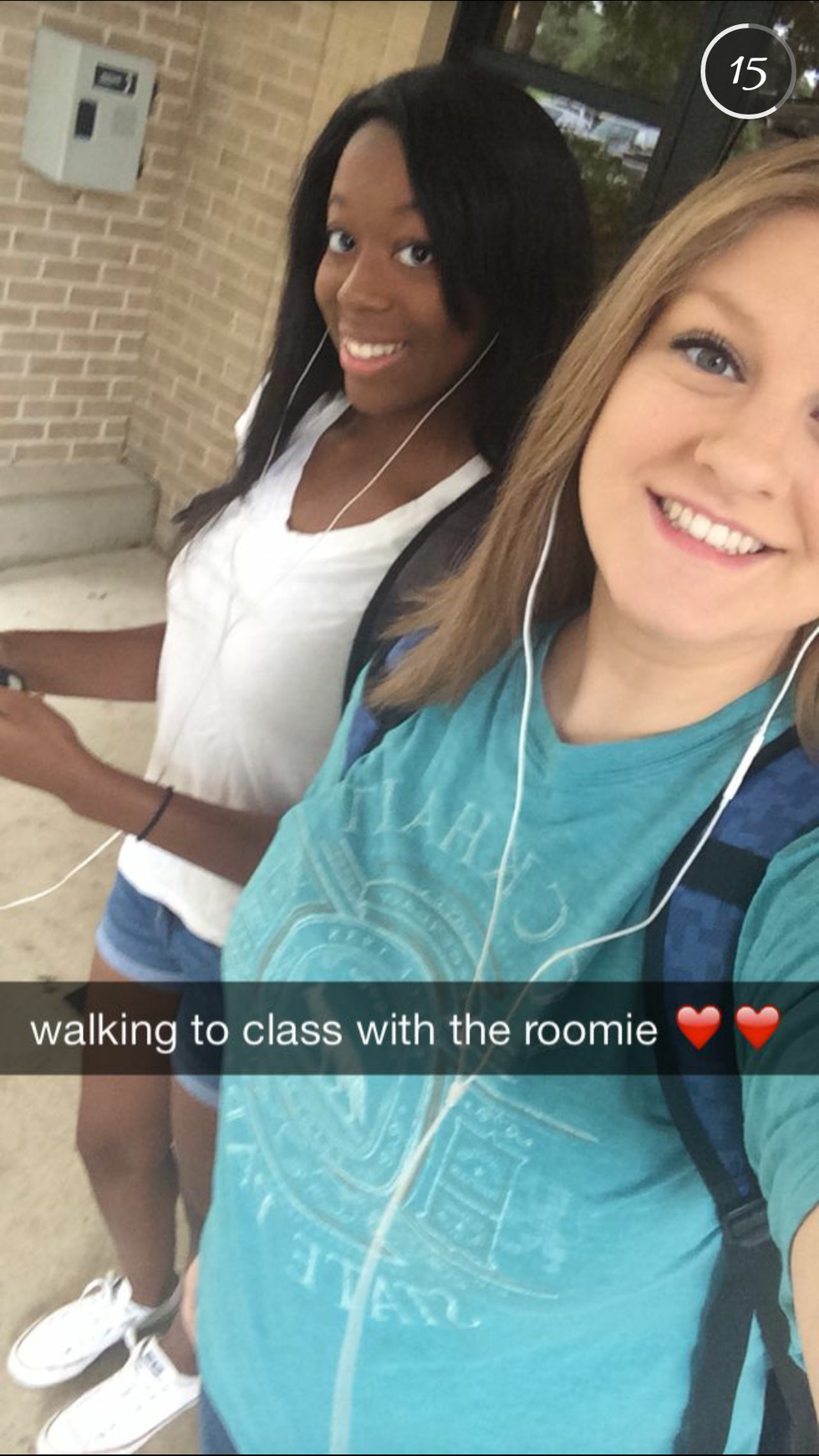 Not only are we different emotionally, but also in our education and hobbies. Elizabeth loves to sing and is in our school’s choir, she will be attending our nursing school, and she’s in one of the well-known sororities here on campus. I, on the other hand, love being involved with student leadership positions on campus such as Peer Mentor in the Black Student Union, and I love to be in the gym. We both have different friend groups that we hang with and our sides of the room are different. Elizabeth’s side has a lot of "Star Wars" and painted canvases of her sorority hanging up. My side has a big Ariana Grande poster and a big heart with pictures filled in of friends and family. Also my side of the room is more neutral colored with a lot of SpongeBob merchandise. She has more of the brighter colors with patterns.