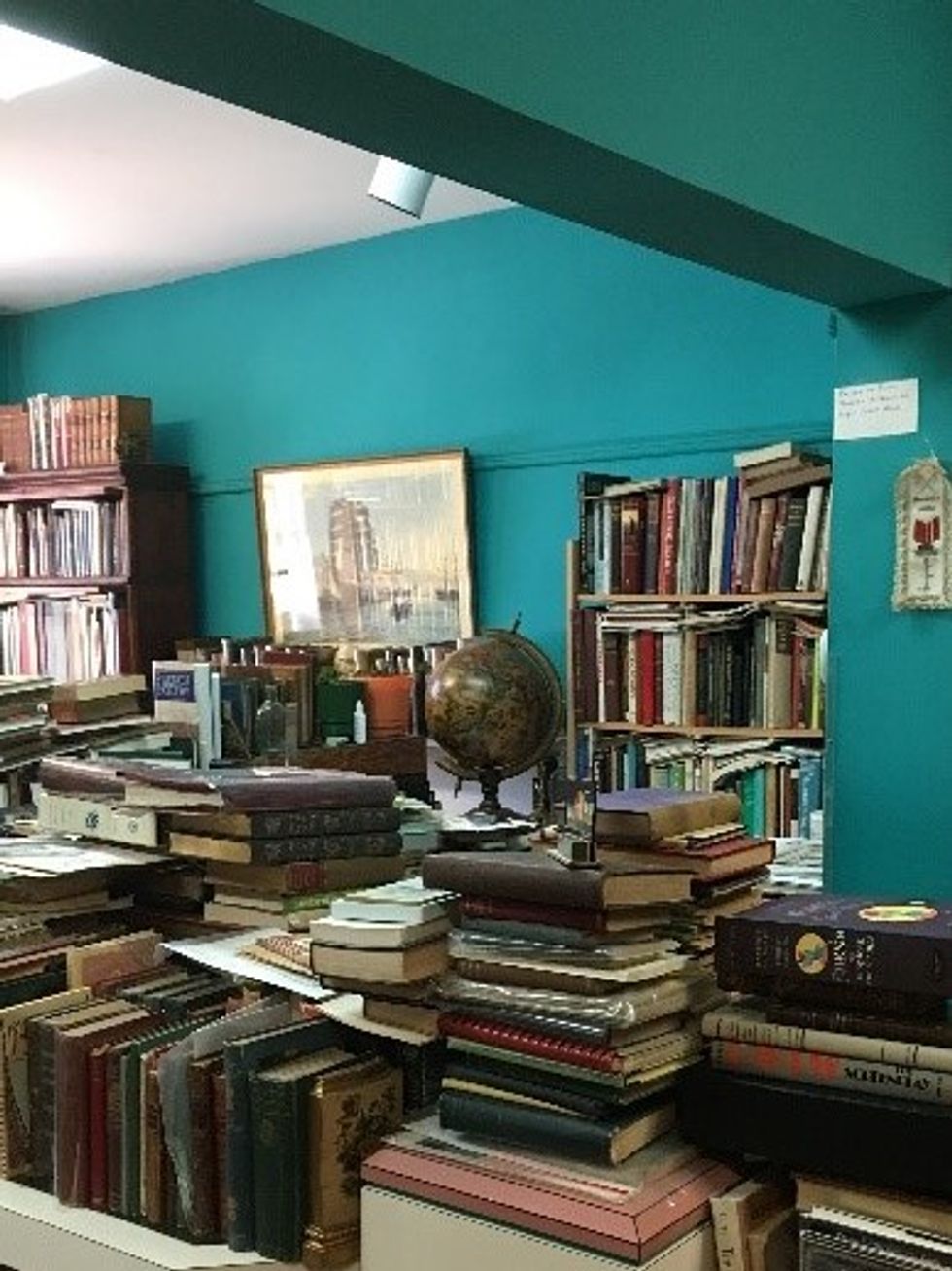 I briefly poke my head inside an antique bookstore, but I keep losing the elderly storeowner among the handwritten essays of Montaígne and stack upon stack of reinterpreted Shakespeare. He doesn’t seem very eager to talk to me anyway, so I continue down the street, passing piles of rolled-up Oriental rugs, wide-open doors and water bowls set out for passing dogs.
